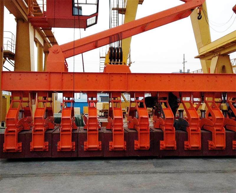 极炭块堆垛起重机是炭素厂炭块仓库的专*转运设备,该设备主要有桥架、大车运行机构、起升机构、导向装置、夹钳装置、控制系统、电动葫芦等部分组成。其用于阳极炭块库中抓运生、熟炭块,及其它零星吊运。其自带的夹具每次抓取19或21块纵向排列的阳极炭块进行往返堆垛或装车,也可实现废块的取出及合格块的插入,可堆积9层。