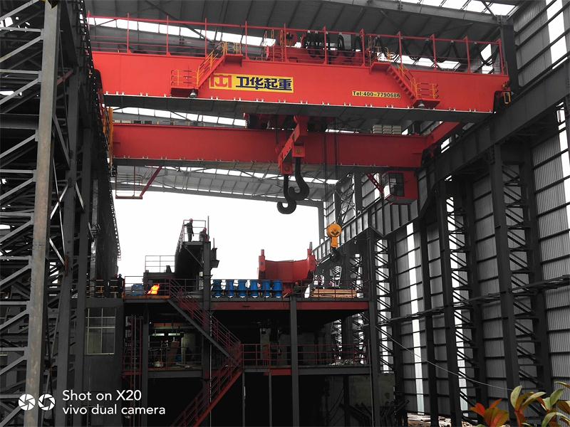 铸造起重机是炼钢连铸工艺中的主要设备,主要用于转炉加料跨向转炉兑铁水;在精炼跨将钢液包吊运至精炼炉或在钢水接受跨将钢液吊运到连铸大包回转台上。